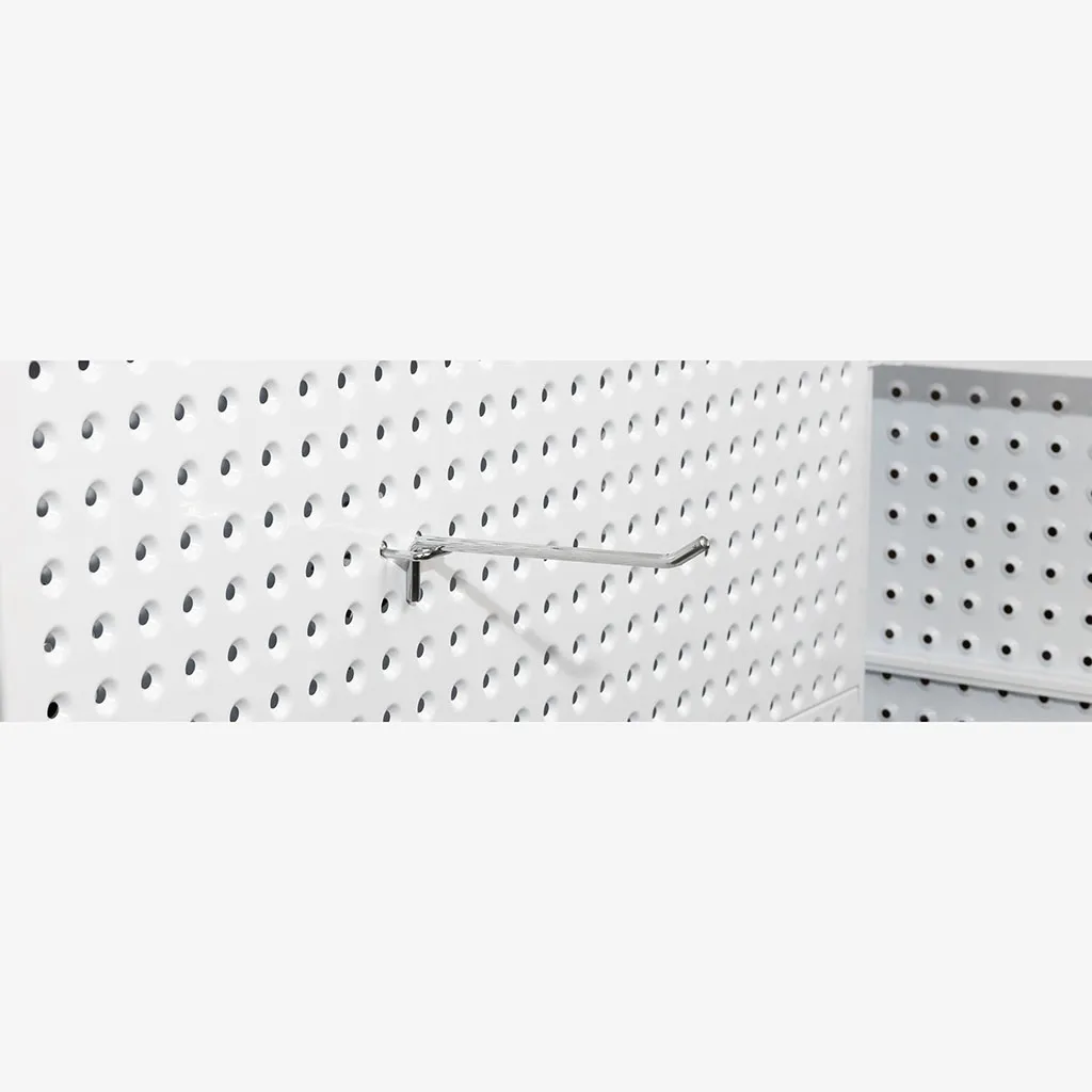 150mm chrome pegboard hooks, at 6mm diameter these hooks are strong and are specially made for Volcano pegboard gondola shelving. With these hooks, you can rest knowing they will take the weight of your products. This pegboard hook is suitable for. Volcano Pegboards Slatwalls Masonite Pegboards Not suitable for Flat metal pegboards.