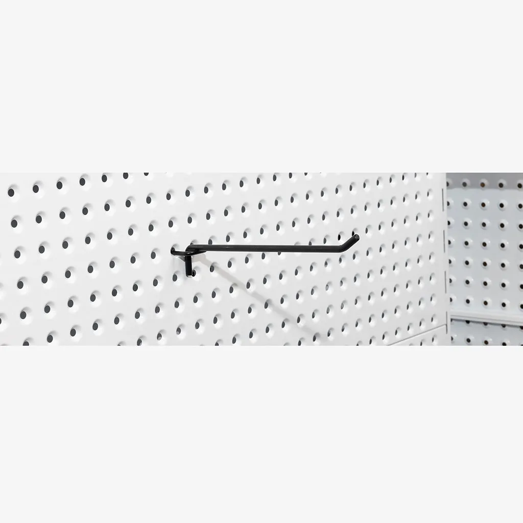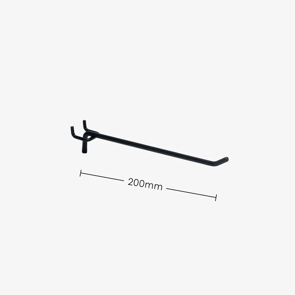 200mm Black pegboard hooks, at 6mm diameter, are strong and specially made for Volcano pegboard gondola shelving. With these hooks, you can rest knowing they will take the weight of your products. This pegboard hook is suitable for; Volcano Pegboards Slatwalls Masonite pegboards Not ideal for Flat metal pegboards.