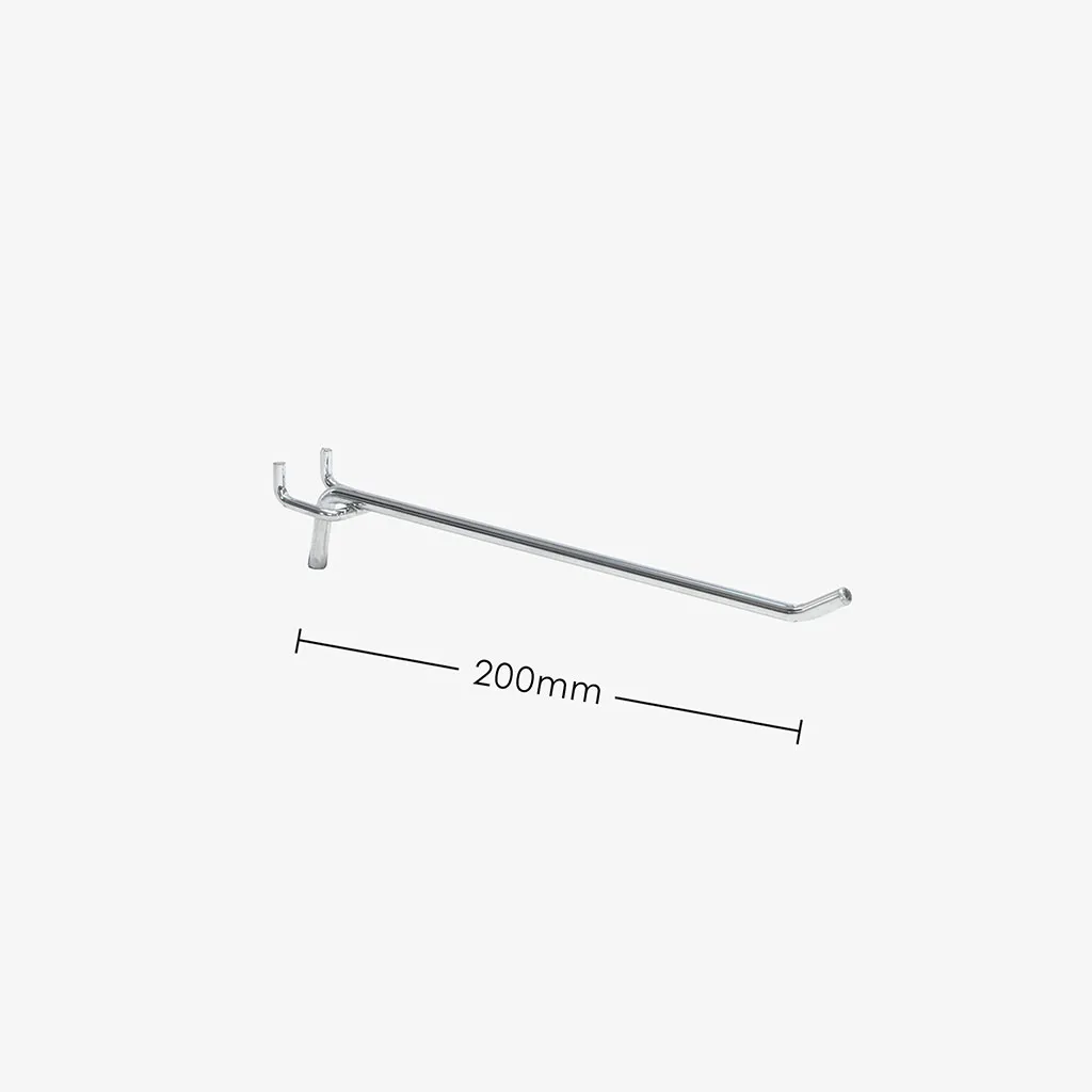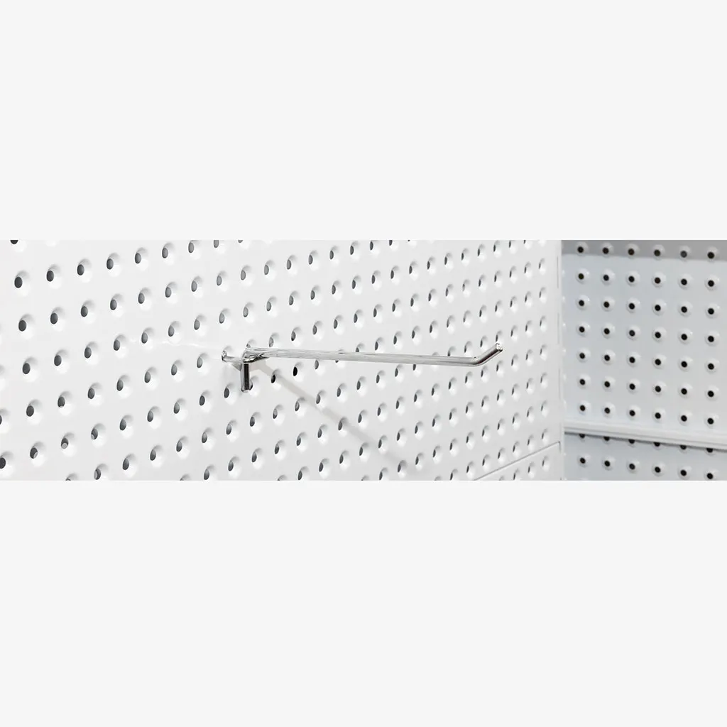 200mm chrome pegboard hooks, at 6mm diameter these hooks are strong and are specially made for Volcano pegboard gondola shelving. With these hooks, you can rest knowing they will take the weight of your products. This pegboard hook is suitable for. Volcano Pegboards Slatwalls Masonite Pegboards Not suitable for Flat metal pegboards.