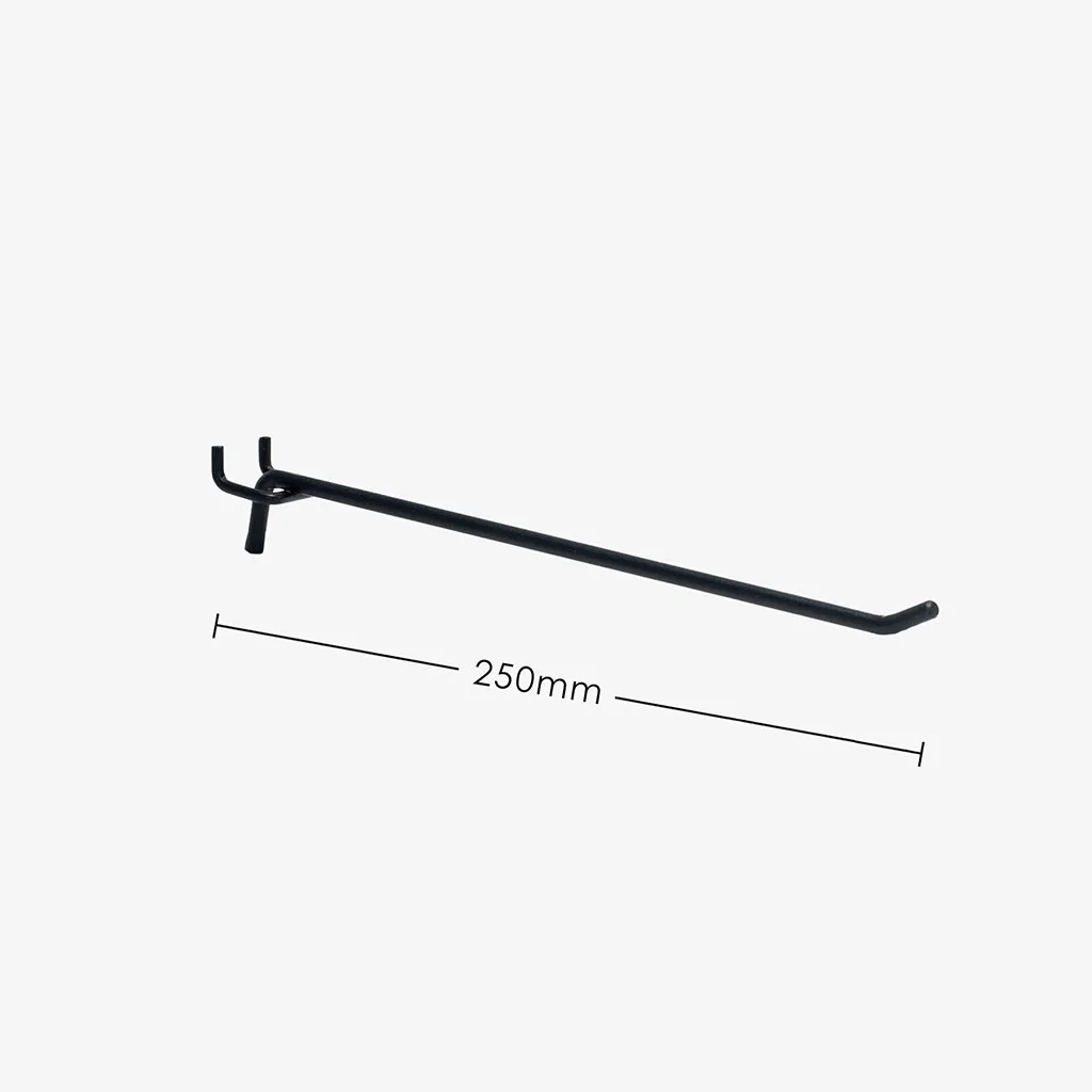 250mm chrome pegboard hooks, at 6mm diameter, are strong and specially made for Volcano pegboard gondola shelving. With these hooks, you can rest knowing they will take the weight of your products. This pegboard hook is suitable for. Volcano Pegboards Slatwalls Masonite Pegboards Not suitable for Flat metal pegboards.