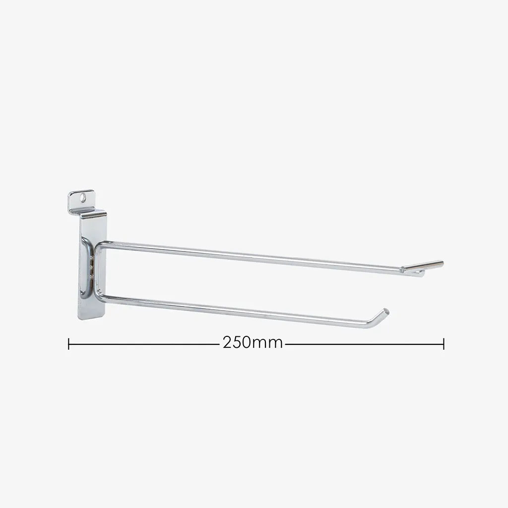 250mm heavy duty chrome flip scan/price tag hook, suitable for all major slat walls.
