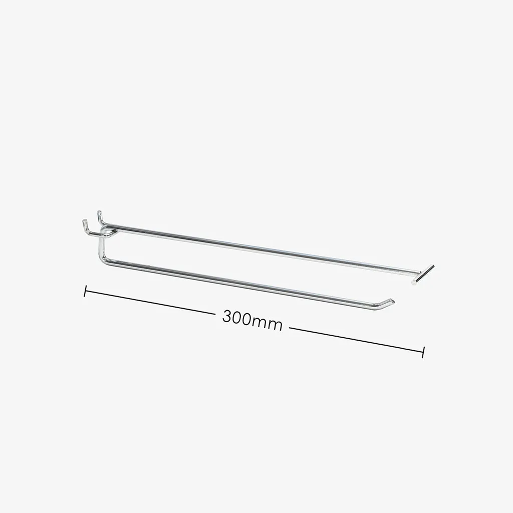 300mm flip scan/price tag hook, suitable for all volcano pegboards and slatwalls.