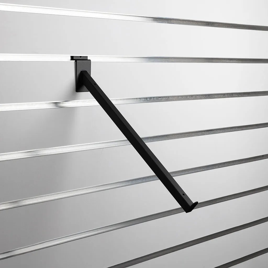 Maximize your retail space with our Black Powder Coated Slatwall Angled Bracket for Tile Display.