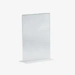 This acrylic double-sided T-Shape counter Sign Holder, can be used to display messages, promotions, menus, and more. It has a simple design where you can easily slide your page in and slide it out when it needs to be updated.