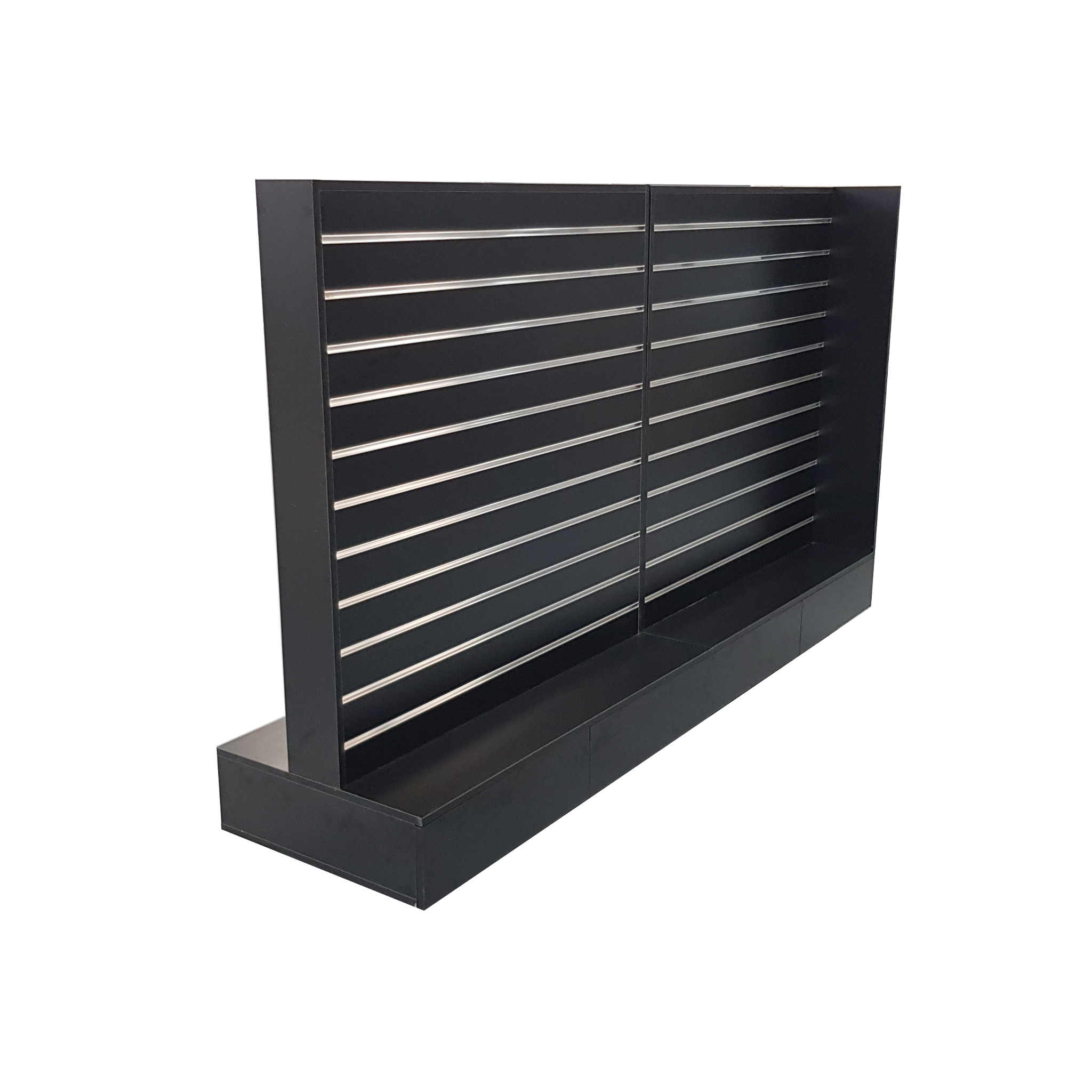 - Flexibility: 100mm spaced grooves in slat walls for adjustable display heights.