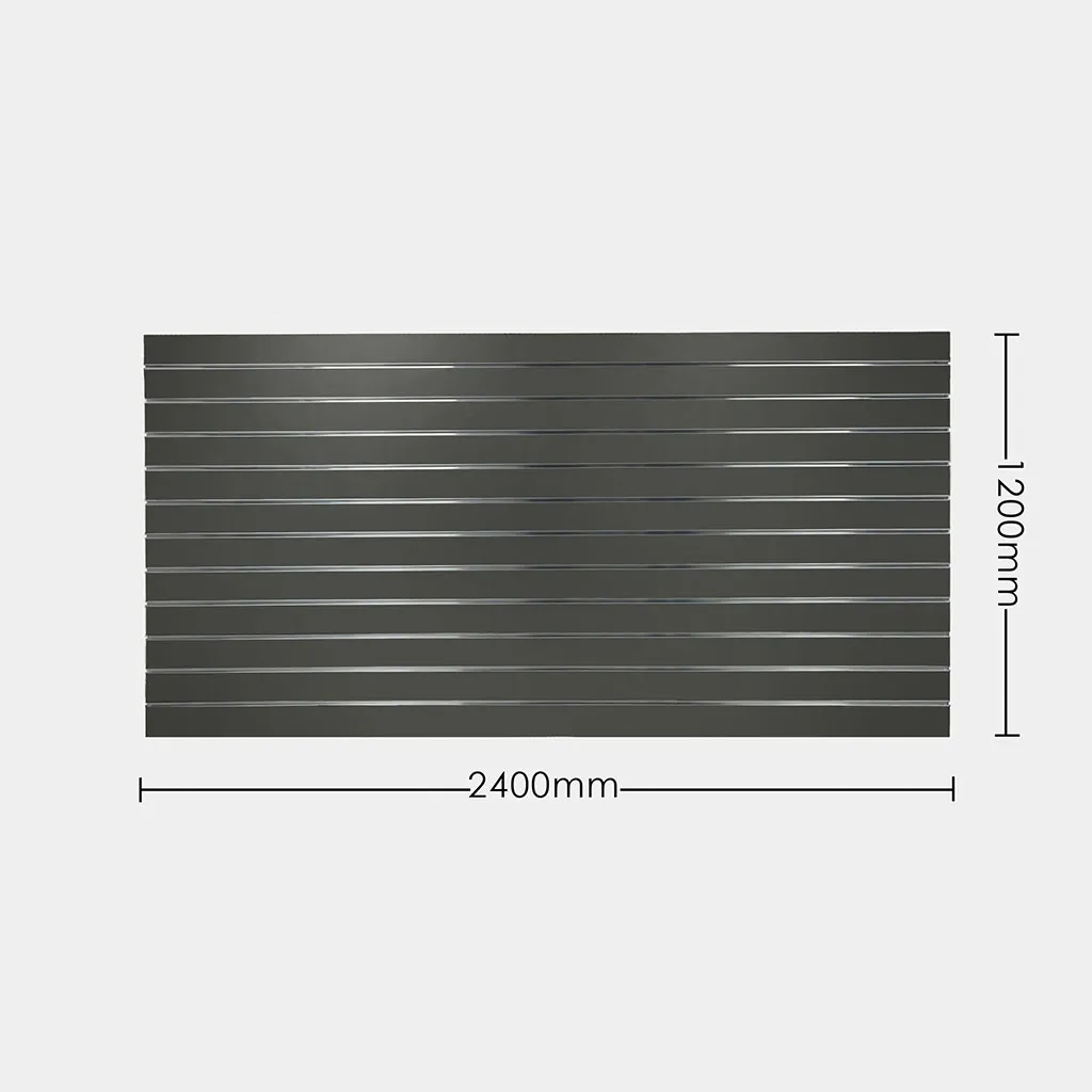 Charcoal matte Landscape/Horizontal slatwall with 100mm spaced grooves and 1 half groove, 2400mm wide x 1200mm high