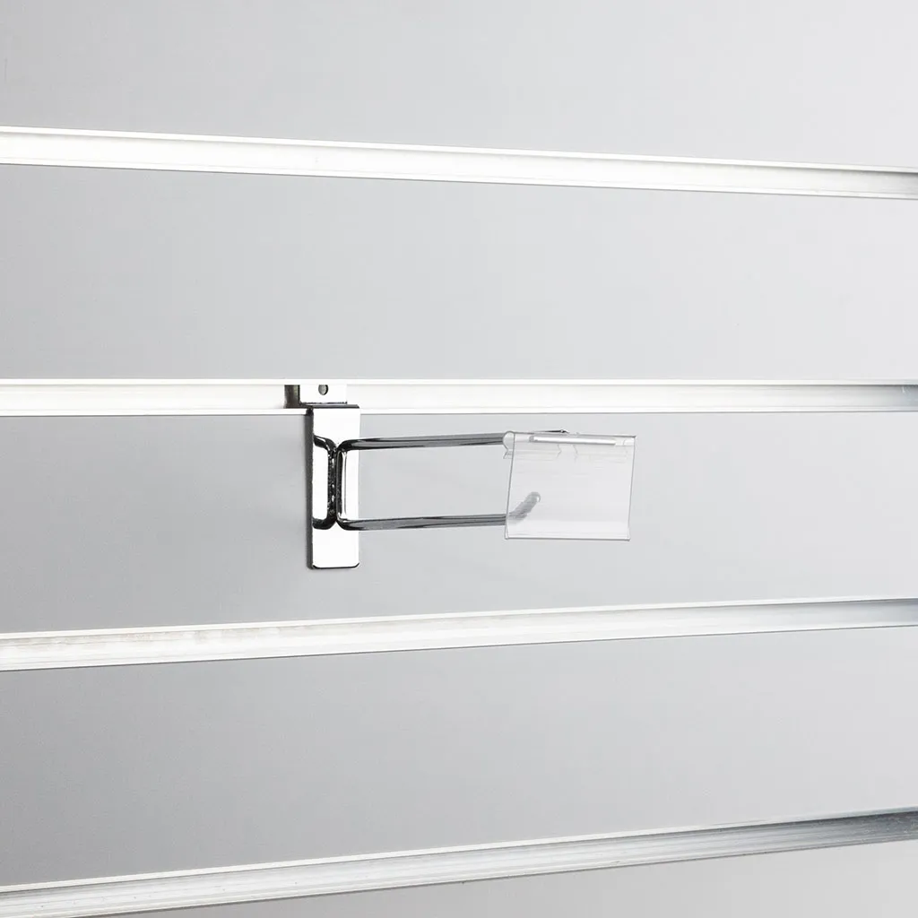 Clear flipper scan ticket holder suitable for slatwall or pegboard hook. 62mm wide x 42mm high