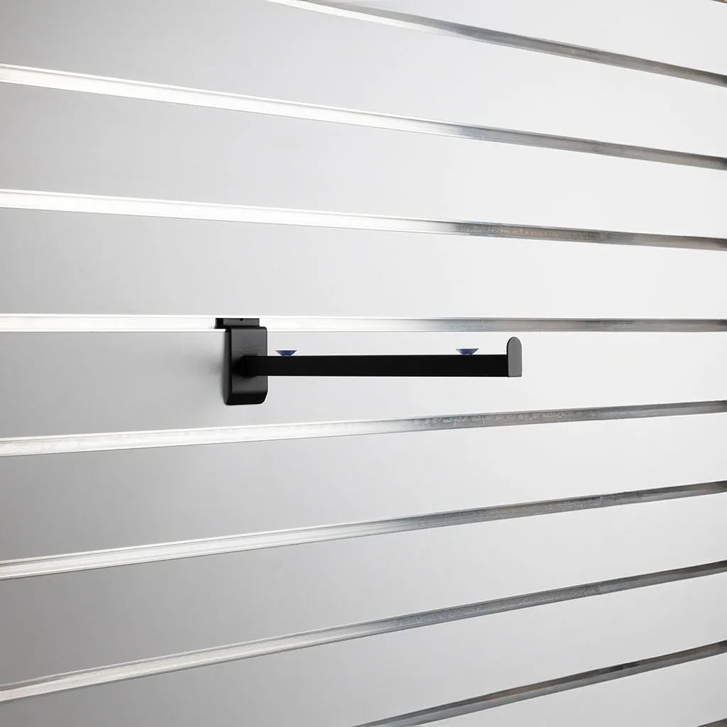 300mm slat wall black straight display arm/bracket with suction cups suitable for glass, wooden shelves or used with clothes hangers