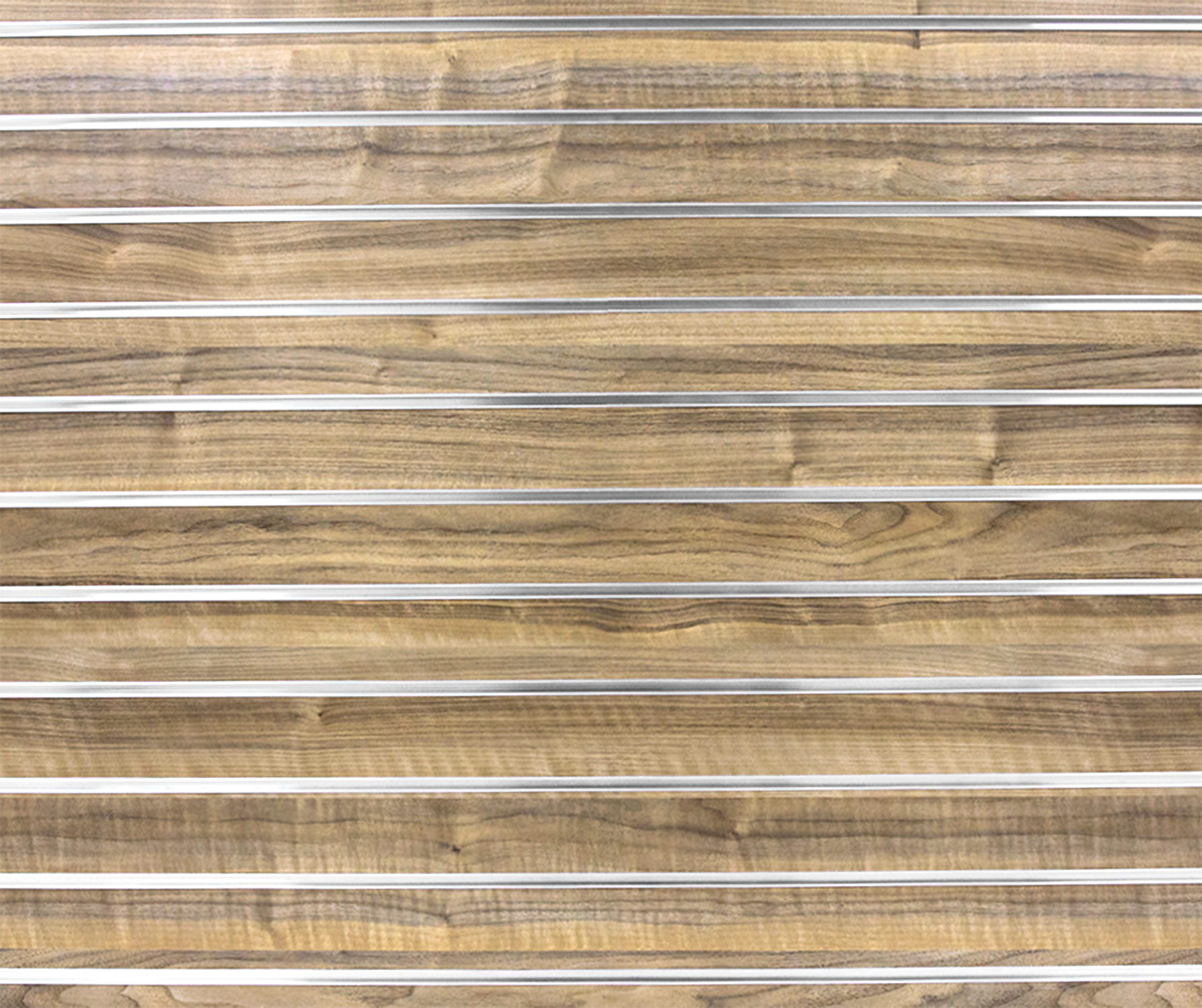 Walnut Landscape/Horizontal slatwall with 100mm spaced grooves and 1 half groove