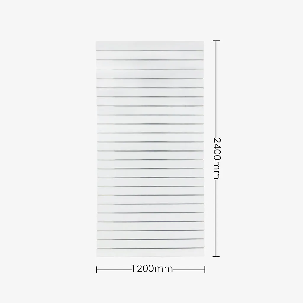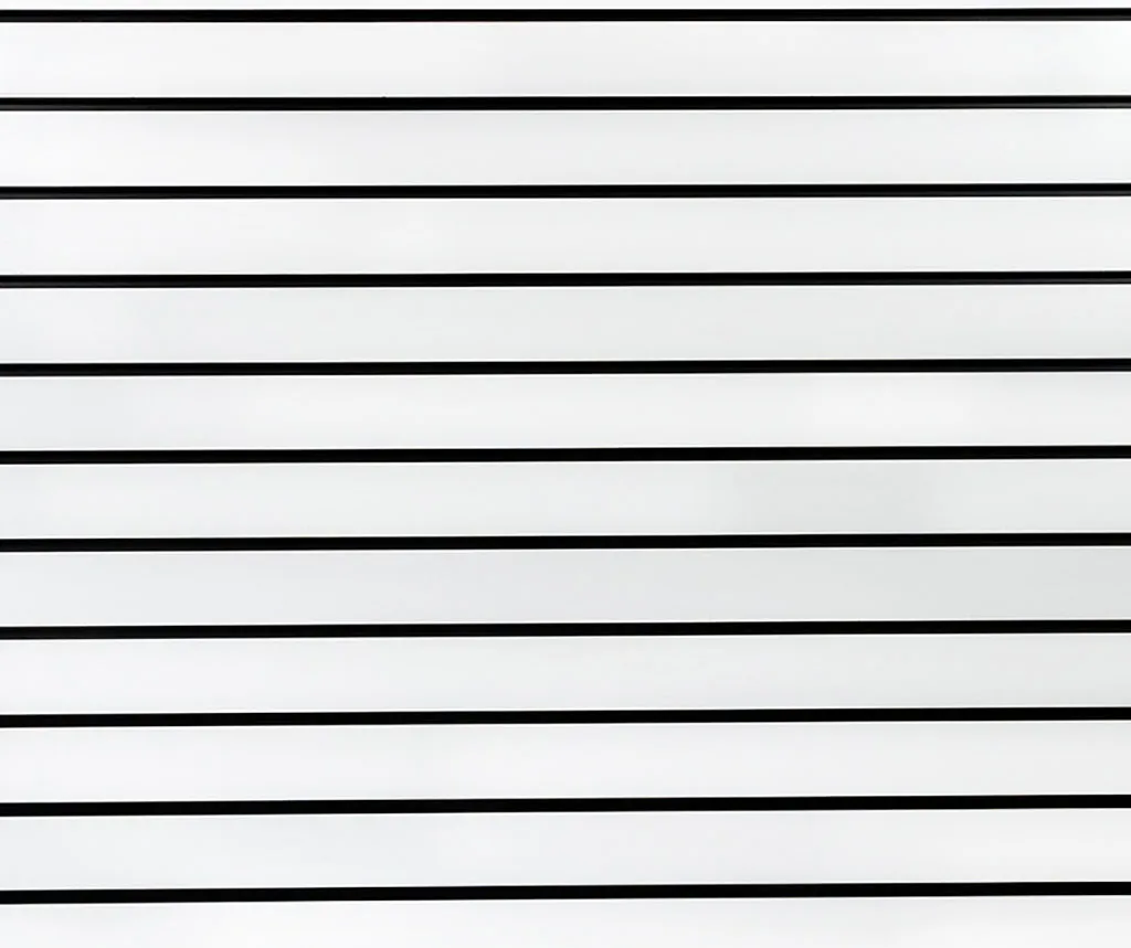 White matte Portrait/Vertical slatwall with 100mm spaced grooves